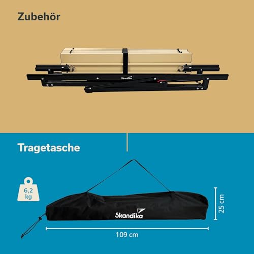 Skandika Maikku | tavolo da campeggio in alluminio pieghevole per 6 persone, capacità di carico 80 kg, 107 x 70 x 70 cm, impermeabile, leggero, piano d'appoggio (marrone chiaro)
