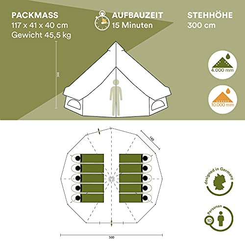 Skandika Tenda Tipii 400/500 per 8/10 persone | Tenda in cotone impermeabile, 4000 mm di colonna d'acqua, zanzariera all'entrata e alla finestra (10 persone)
