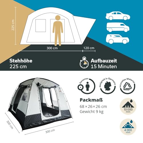 ✔ AUTOPORTANTE: la spaziosa tenda veranda può stare in piedi in modo stabile senza essere fissata al veicolo. Così puoi tranquillamente fare delle escursioni con il veicolo, senza dover smontare la tenda.