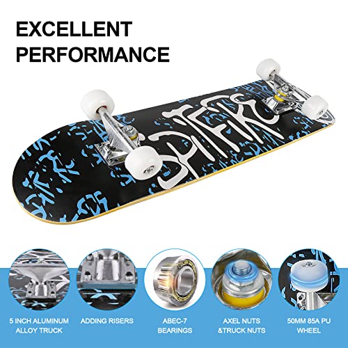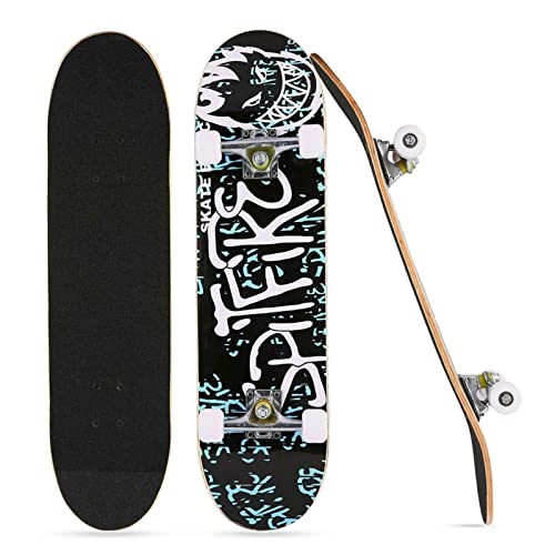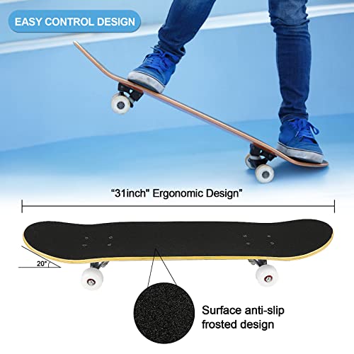 Skateboard completo, Skateboard a 7 strati Acero Concavo Double Kick Skateboard 31 "x 8" Completo Cruiser Skateboard con Cuscinetti a Sfera ABEC-7 e Ruote 85A per Bambini Ragazzi Adulti