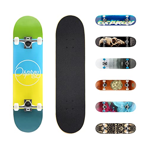 Skateboard completo per tricks double kick Osprey, principianti deck acero 31" x 8"