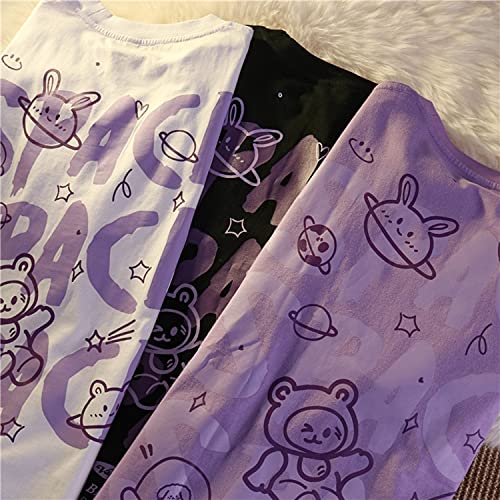 Skateboard Frog Maglietta Goth da Donna Y2K Harajuku Graphic Tops Cotone Anime Vestiti (Viola, XL)