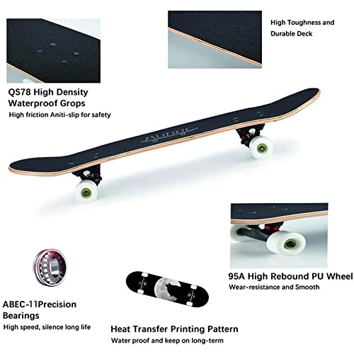 Skateboard standard da 31 pollici, 7 strati di superficie in tavola d'acero, adatto a bambini, adolescenti, adulti, principianti e professionisti, con un carico massimo di 150 kg-Lupo della notte