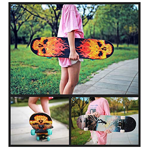 Qis.GH 31"X 8" Skateboards, 7-Layer Tricks Maple Legno Professionale Skateboard, Completi Tavole Standard Pattinare con LED Lampeggiante della Rotella per Principianti Bambini Giovani, Adulti,Beach