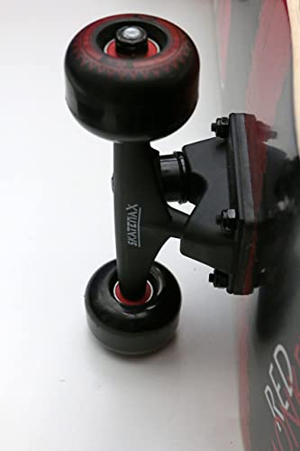 VELOCE E SILENZIOSO cuscinetti abec-5, Griptape di alta qualità stampato nero 80a, logo Skate-Max. Ruote Nere in pui 54mm x 36 con logo stampato in rosso. durezza 88A