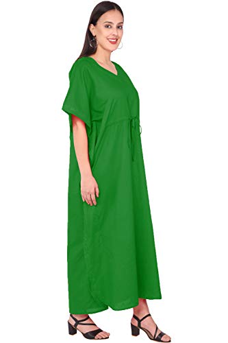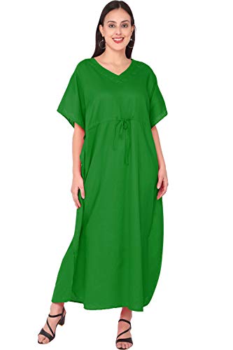 SKAVIJ Da Donna Tunica Cotone Ricamato Lungo Caftano (Formato Libera, Verde)