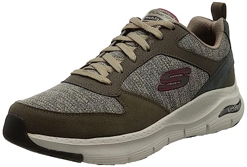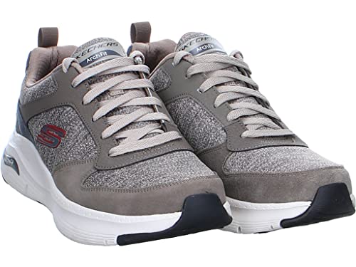 Skechers Arch Fit Roykon, Sneaker Uomo, Tan Leather/Mesh/Red Trim, 42 EU