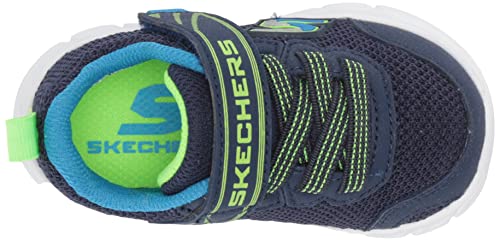Skechers Comodo Flex Mini Trainer, Scarpe da Ginnastica, Bordo Sintetico Blu Lime in Tessuto Blu Navy, 20 EU