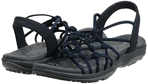 Skechers Women's Reggae Slim-Forget Knotted Web Gore Open Toe Slingback Sandal, Navy, 11 M US