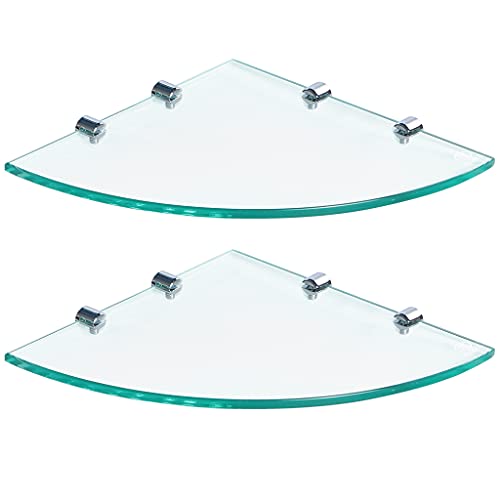 Skelang 2 Pezzi Mensole doccia angolari, mensola bagno, mensola doccia vetro con 8 Staffe, per Bagno, Cucina (24×24 cm)