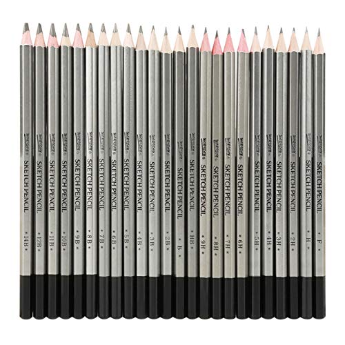 【24 tipi di livello di durezza】 Con 9H-14B, per un totale di 24 tipi di livello di durezza, 24 PCS Sketch Pencil possono soddisfare tutti i tipi di esigenze. Pennelli.