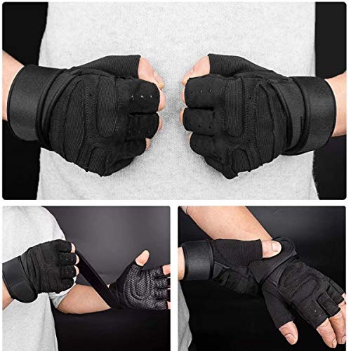 Skevic Guanti Palestra Uomo Donna - Guanti Fitness per Sollevamento Pesi, Crossfit, Gym, Sbarra Trazioni, Calisthenics, Guanti Ciclismo Antiscivolo Traspiranti Protezione Completa (Nero, XL)