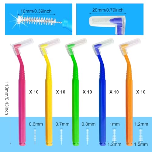 Quantità sufficiente: riceverai 50 scovolini interdentali a forma di L in 5 colori, sufficienti per l'uso quotidiano e la sostituzione.