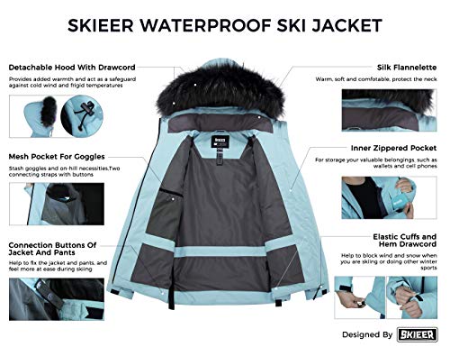 Skieer Giacca da Sci Impermeabile Cappotto da Neve Invernale Caldo Giubbotto Antipioggia con Cappuccio Antivento Donna Blu M