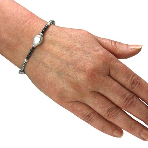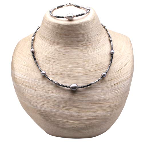 Skielka Designschmuck Set di collana + bracciale orafo realizzato in Germania (argento sterling 925) da donna con perle e bracciale - con ematite, Argento sterling, ematite