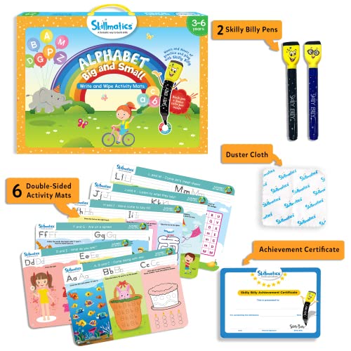Tappetini per attività scrivi e pulisci: include 6 tappetini per attività su entrambi i lati, 2 penne Skilly Billy, 1 panno per spolverare e 1 certificato di successo Skilly Billy. Tutti i tappetini sono dotati di istruzioni facili da capire.