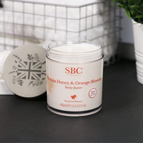 SBC Skincare - Crema Idratante Corpo con Miele di Manuka e Fiori d'Arancio - 400 ml - Calma, Protegge e Idrata la Pelle - Consistenza Spessa - Manuka Honey & Orange Blossom Body Butter