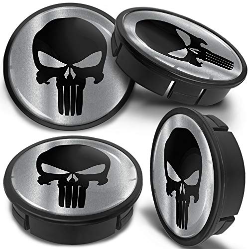 SkinoEu 4 x 60mm Coprimozzi Coprimozzo per Centro Universale Copricerchi Tappi per Ruote Cerchi in Lega Nero Argento Dito Medio Cranio CX 38