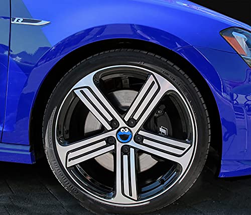 SkinoEu Compatibile con Coprimozzo VW 65mm Copricerchi Tappi Ruota Cerchi Lega Ricambio Nero Blu Elmo Cookie Monster CV 41