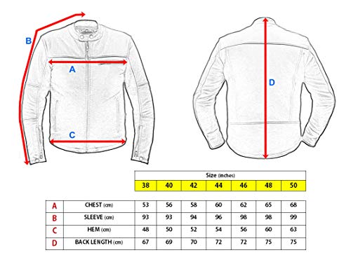 Skintan, Giacca da moto, Rinforzata, Da uomo, In pelle Nero UK 127 cm Petto