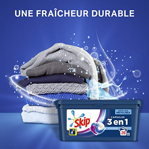 Skip Ultimate - Detersivo capsule Trio Active Clean x78, capsule 3 in 1, efficienza, cura delle fibre e freschezza a lunga durata, 78 lavaggi (set da 3 x 26 capsule)