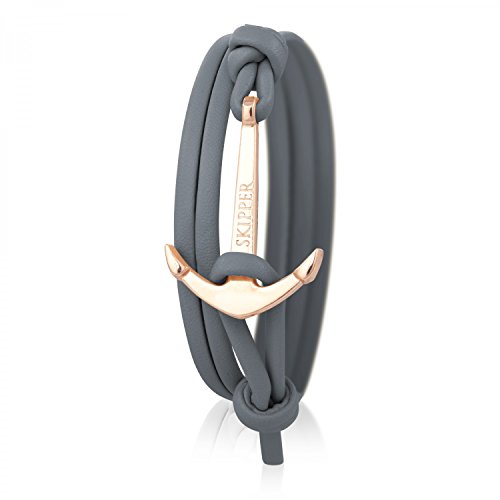 Skipper ancora braccialetto bracciale in pelle in grigio con dorato ancora 6983