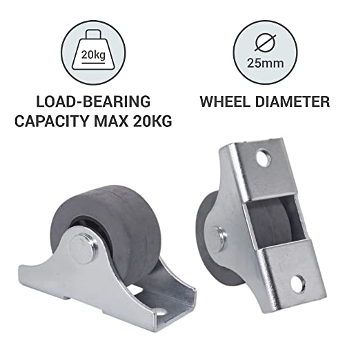 SKIR'CO Confezione da 4 ruote piccole da 25 mm, ruote in gomma, ruote fisse, non girevoli, direzioni unidirezionali (4)