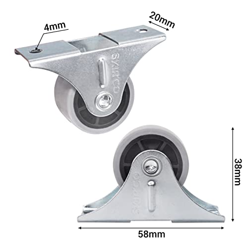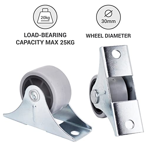 SKIR'CO Confezione da 4 ruote piccole da 30 mm, ruote in gomma grigia, ruote fisse, non girevoli, direzione unidirezionale, viti incluse (4)