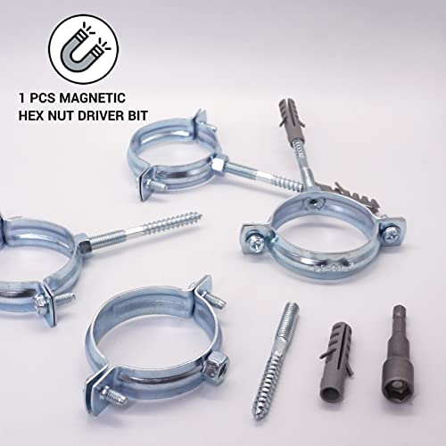✔️ Confezione: 2 staffe per tubi, 2 tasselli in plastica 10 x 50 mm, 2 bulloni per gancio e 1 punta esagonale magnetica