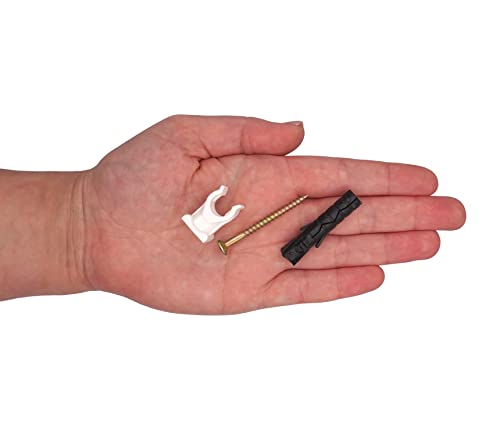 Imballato: 20 clip per tubi. Dimensioni: 10 mm. Colore bianco. Sono inclusi anche 20 tappi in plastica e 20 viti in acciaio.