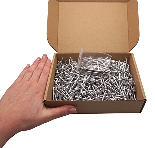 Imballato: 500 rivetti ciechi e due punte da 4,9 mm di diametro. Dimensioni dei rivetti: 4,8 x 6 mm. Corpo in alluminio e mandrino in alluminio.