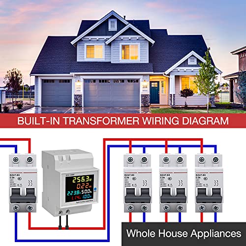 【Monitoraggio del consumo di elettricità】 Questo contatore energia elettrica su guida DIN può aiutarti a ridurre il consumo energetico e risparmiare denaro. Contatore di elettricità su guida DIN Ha un chip ad alta precisione, che lo rende sicuro da usare con alta precisione. Il valore dellenergia elettrica e dellenergia elettrica del tempo cumulativo viene salvato automaticamente quando lalimentazione viene spenta.