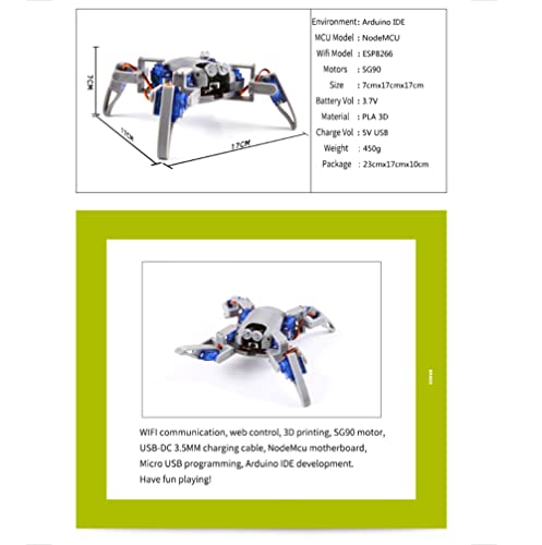 SKLLA WiFi Fai da Te STEM Bionic Crawling Robot Esp8266 nodemcu,arduino Kit Robot Autostabilizzante Kit Robot Ragno Quadrupede Bionico per Arduino