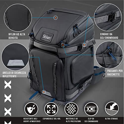 Sklon Zaino per scarponi da sci e snowboard - Espansione da 55-65 litri - Zaino impermeabile per sport invernali per trasportare la tua attrezzatura da sci e snowboard con stile