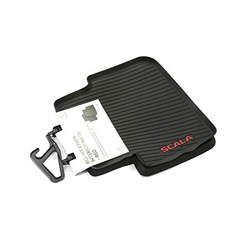 Skoda 657061512C - Tappetini per Tutte Le Condizioni atmosferiche, 2 tappetini Posteriori in Gomma, Colore Rosso, con Scritta Scala