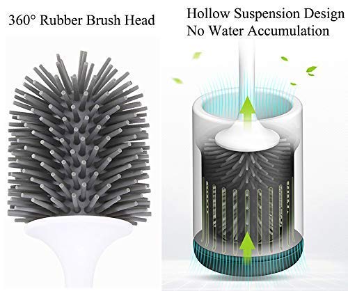 Skroad Scopino e Porta spazzolino, Morbido Bagno in Silicone Set di spazzole per toilette Bianco (Nessun Guanto Incluso)