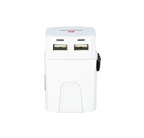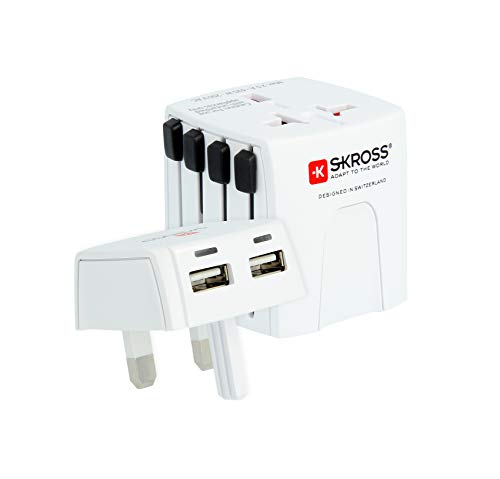 SKROSS | 1.302830 | MUV Micro USB | Adattatore Universale da Viaggio a 2 Poli - Tension e Potenza: 100V - 250W / 250V - 625W - 2 Prese USB 5V/2,4A - Protezione Anti Scossa Elettrica