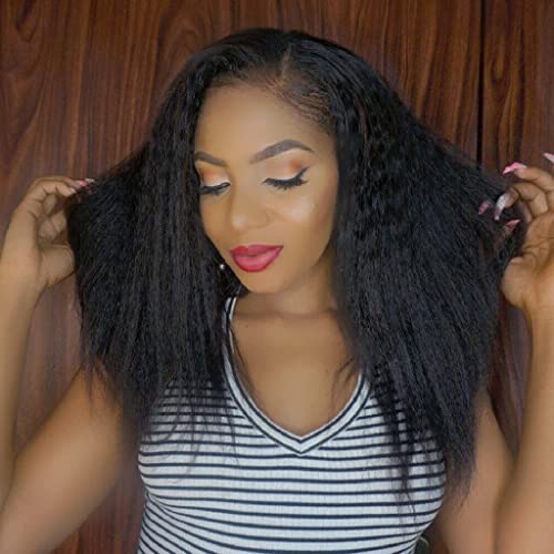 SKULD 4" x 4" Yaki Wig Parrucca Donna Capelli Veri Wigs Lace Closure Wig Brazilian Human Hair 150% Density Parrucca Capelli Umani (14inch)