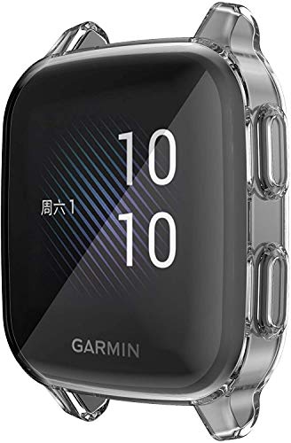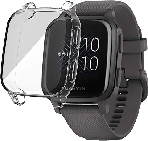 SkyBand TPU Silicone Custodie Contiene Protezione per Lo Schermo Compatibile per Garmin Venu Sq (Nero + Trasparente)