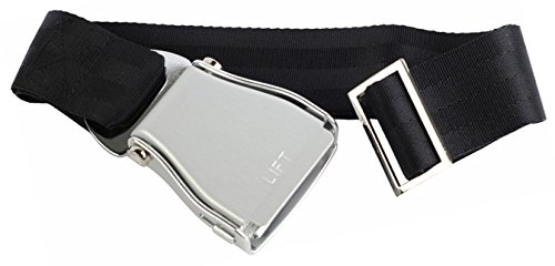 Skybelt - Cintura per aereo, colore: argento/nero, con apribottiglie Airline Seatbelt