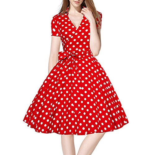 Skyblue-uk - Abito da ballo vintage, modello Audrey Hepburn, anni Quaranta, Cinquanta, Sessanta, senza maniche, per cocktail, matrimonio, cerimonia rosso M