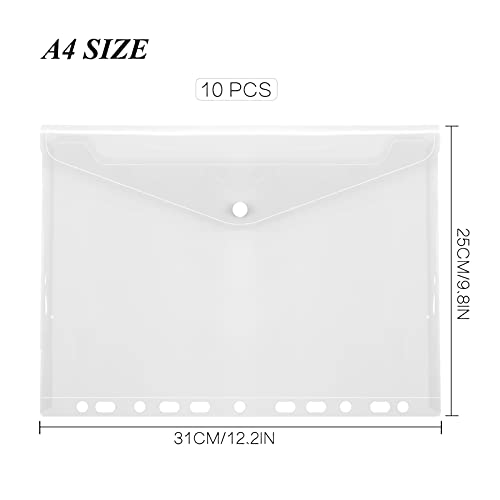 Skycase Cartellina portadocumenti formato A4, 10 pezzi, formato A4, con bottone automatico, formato A4, per documenti, ricevute e raccoglitori a buste, compiti a casa, trasparente