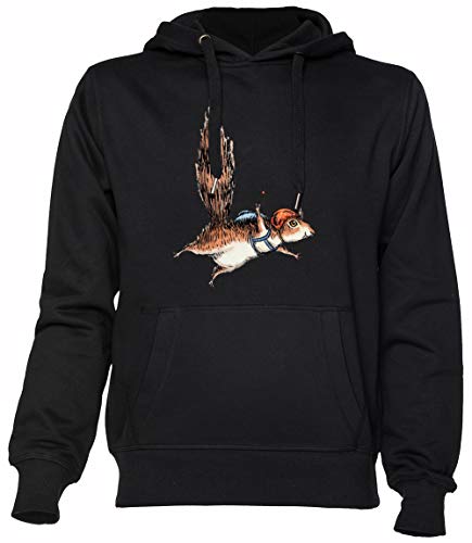 Skydiver Scoiattolo Nero Felpa con Cappuccio Unisex Uomo Donna Black Hoodie Unisex Men's Women's