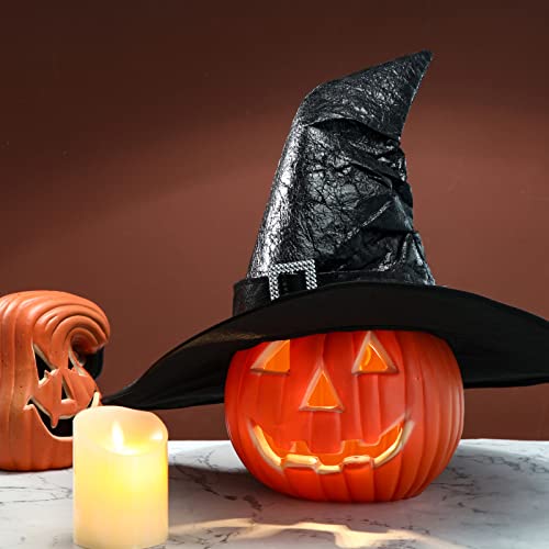Materiale affidabile: il cappello da strega nero di Halloween è realizzato in pelle PU, che ha più consistenza del normale cappello da strega, leggero e non facile da rompere, sicuro e robusto, comodo e leggero, che può servirti a lungo