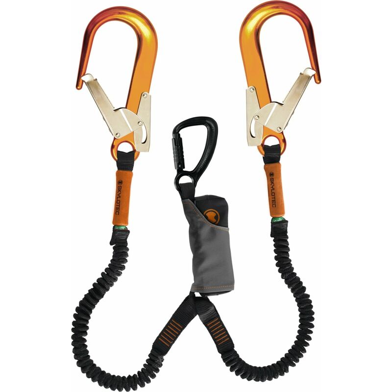 Cordino con nuovo sistema assorbitore di energia e indicatore di caduta per un peso compreso tra 50 e 140 kg con forza di arresto ridotta. Stabilità finale 22 kN prima e dopo la caduta dinamica. Limitazione della forza di arresto in caso di caduta a meno di 6 kN. Resistente agli spigoli vivi. Skysafe Pro Flex Y alluminio (cordino a Y). Per una protezione permanente contro le cadute. Moschettone in alluminio con una apertura massima di 60 mm. Norma: EN 354;