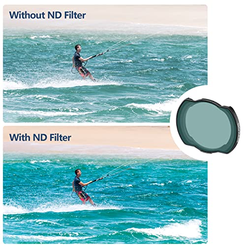 Filtro ND: filtro ND riduce la luminosità, riduce i tempi di esposizione e ottiene sfocatura di movimento. Con la velocità ultraveloce del drone DJI Avata, l'immagine è più dinamica e atmosferica.