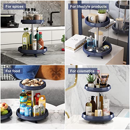 SKYSER Lazy Susan Piatto Girevole Porta Spezie, Pratico 2 Livelli Organizer da Cucina, Portaspezie Multifunzione in Metallo, Portaspezie Rotante per Riporre Barattoli e Spezie (Blu)