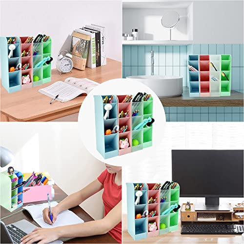 Skytowards 4 Pezzi Portapenne per Scrivania Organizer da Scrivania in Plastica Porta Penne Storage 4 Colori Penna Organizer Portaoggetti 16 Scomparti per Casa, Ufficio e Scuola 20 * 9 * 5CM