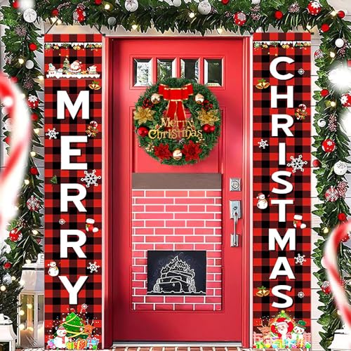 Skytowards 2 Pezzi Stendardi Natalizi per Esterni Striscioni Natalizi Banner di Natale “ Merry Christmas ” Decorazioni Natalizie per Porta 180*30CM Banner Natale per Porta Interno ed Esterno (Rosso)