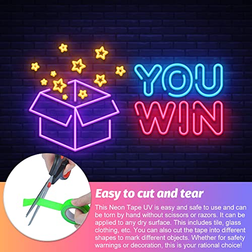 【Materiale di cotone di alta qualità, nessun residuo dopo la rimozione】Questo nastro fluorescente è fatto di nastro in tessuto e rivestimento in vinile, che è durevole. Abbiate buone responsabilità. Se si rimuove il nastro UV nero, non si vedrà alcun residuo appiccicoso. Puoi anche utilizzare questa barra luminosa colorata al neon per fare molti oggetti artigianali interessanti e belli.